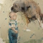 Original Art Print of the painting “Bambino con cane II” – Oil on canvas, 2022 by Nicola Pucci.