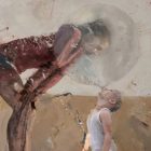 Original Art Print of the painting “Bolla III (Bambino con madre)” – Oil on canvas, 2020 by Nicola Pucci.