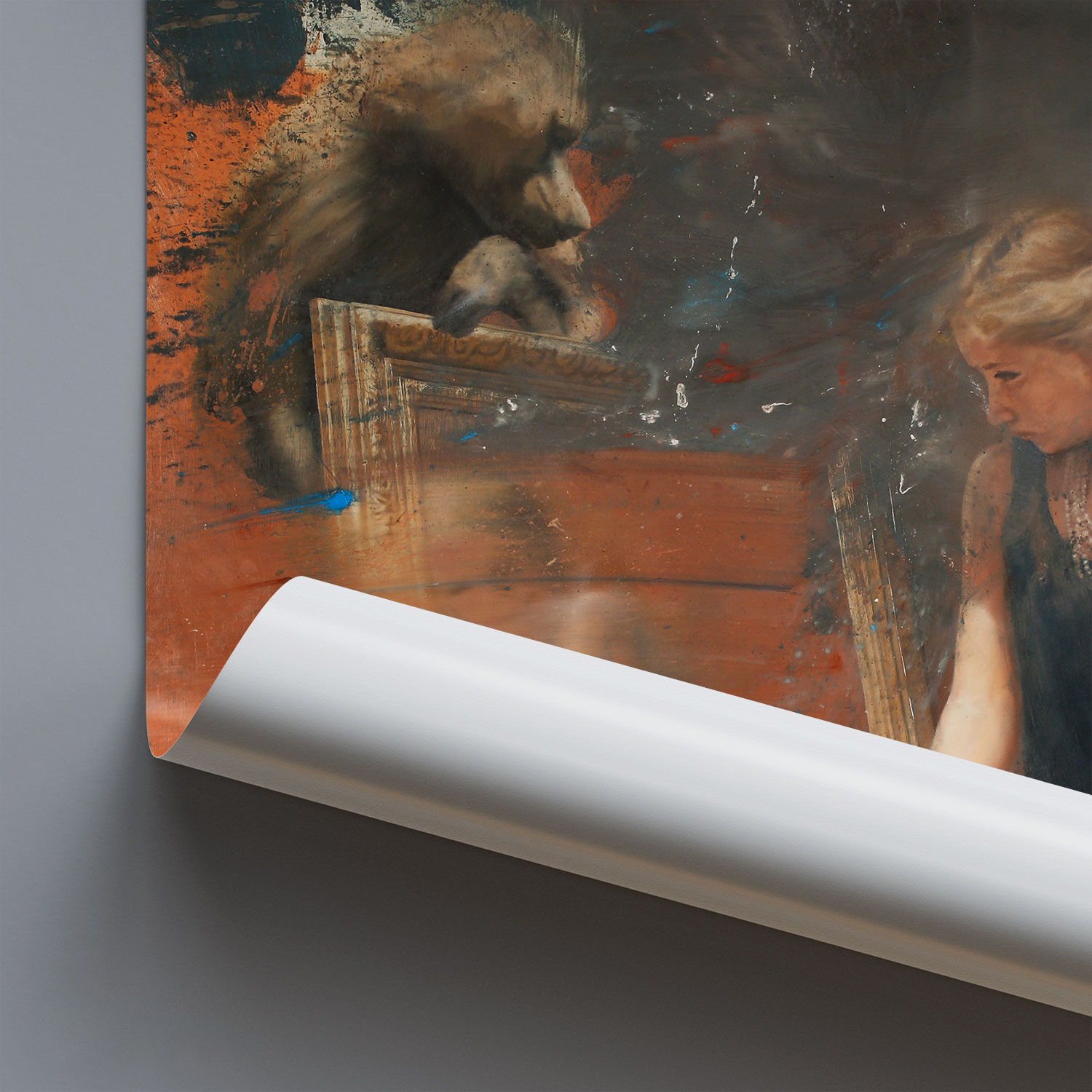 Original Art Print of the painting “Donna allo specchio con babbuino” – Oil on canvas, 2015 by Nicola Pucci.