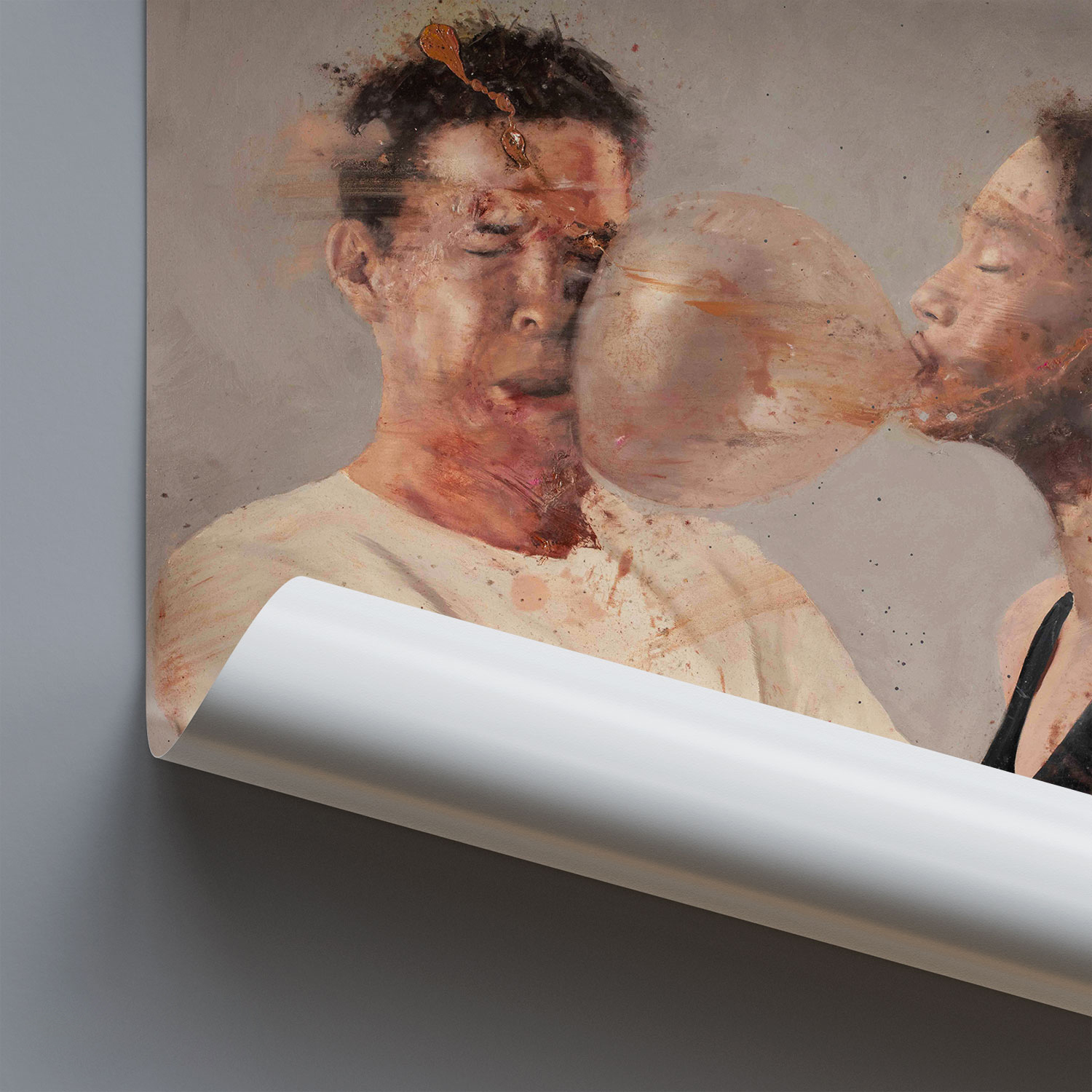 Original Art Print of the painting “Ragazza con pugile – Bolla I” – Oil on canvas, 2020 by Nicola Pucci.