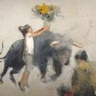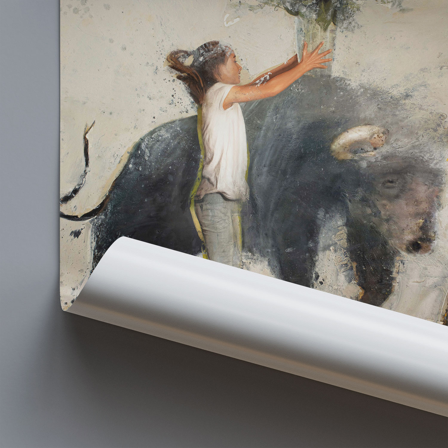 Original Art Print of the painting “Ragazza con toro e rose” – Oil on canvas, 2023 by Nicola Pucci.