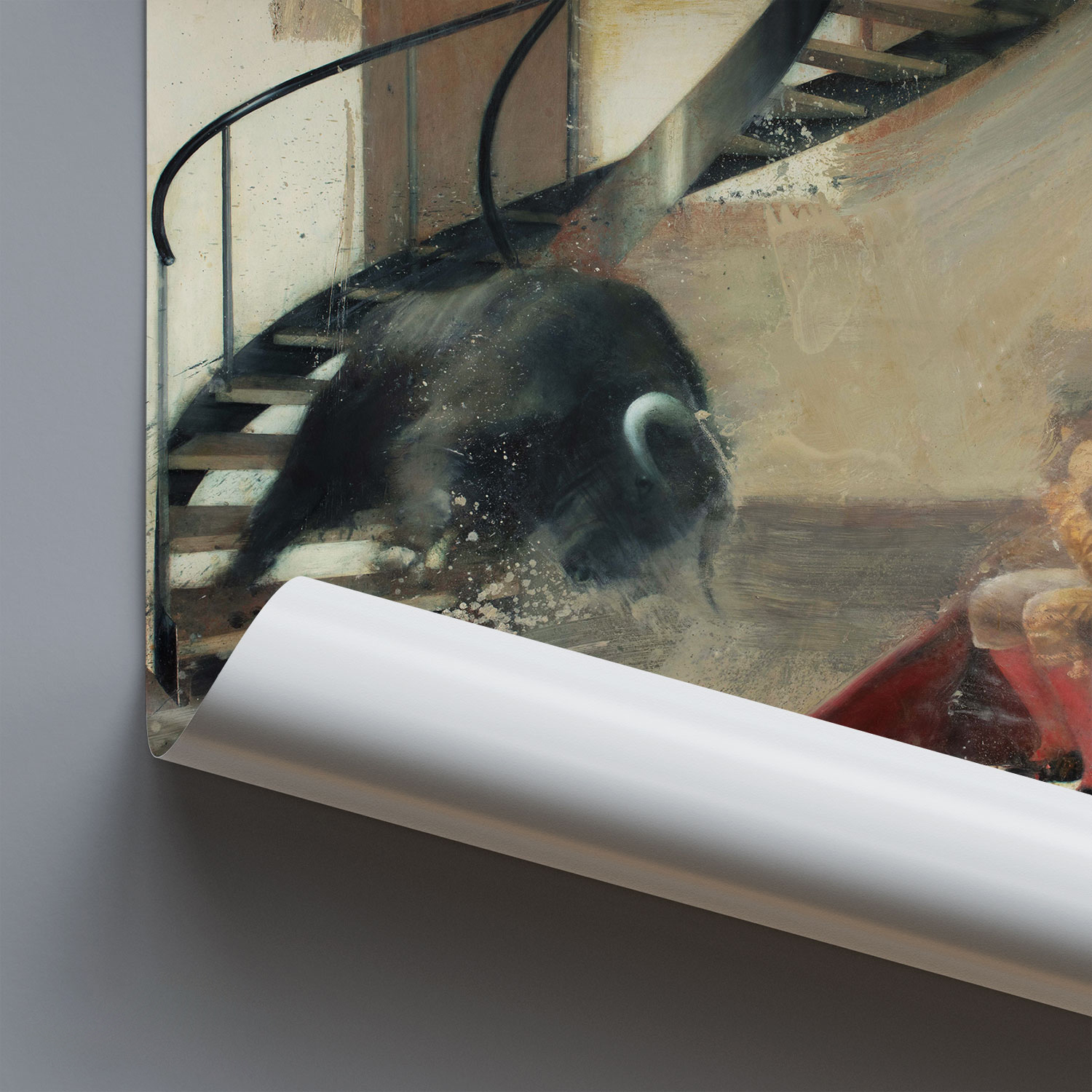 Original Art Print of the painting “Toro da scale con torero I” – Oil on canvas, 2013 by Nicola Pucci.