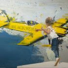 Original Art Print of the painting “Aereo lancio palla” – Oil on canvas, 2022 by Nicola Pucci.