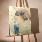 Original Art Print of the painting “Bambino con cane II” – Oil on canvas, 2022 by Nicola Pucci.