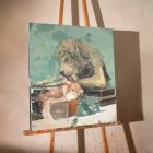 Original Art Print of the painting “Leone con bambino II” – Oil on canvas, 2022 by Nicola Pucci.