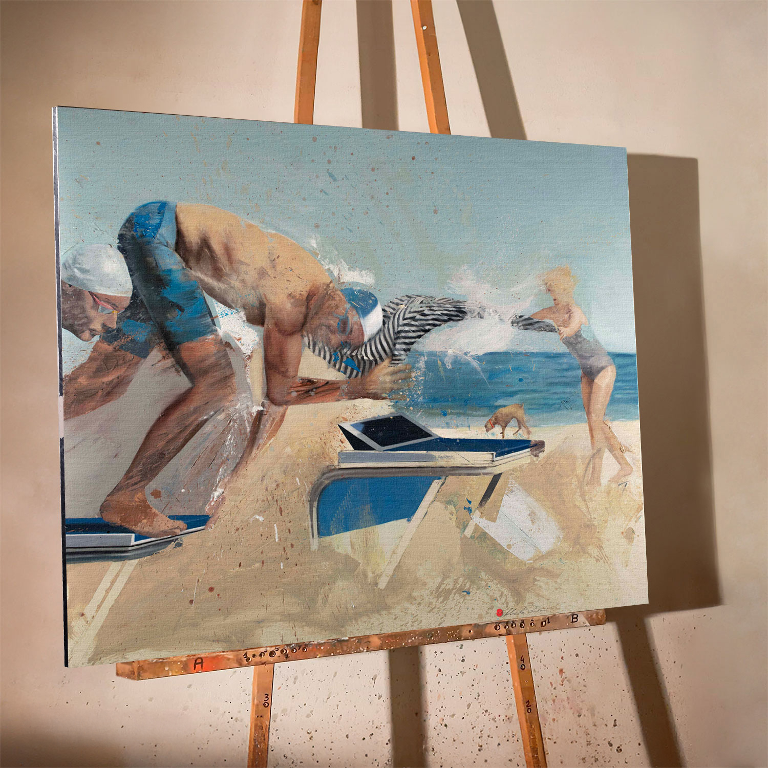 Original Art Print of the painting “Partenza con telo” – Oil on canvas, 2020 by Nicola Pucci.