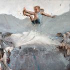Original Art Print of the painting “Salto bambina con cani” – Oil on canvas, 2023 by Nicola Pucci.