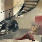 Original Art Print of the painting “Toro da scale con torero I” – Oil on canvas, 2013 by Nicola Pucci.