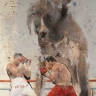 Original Art Print of the painting “Tre Boxer II” – Oil on canvas, 2023 by Nicola Pucci.