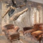 Original Art Print of the painting “Tuffo su divano” – Oil on canvas, 2018 by Nicola Pucci.